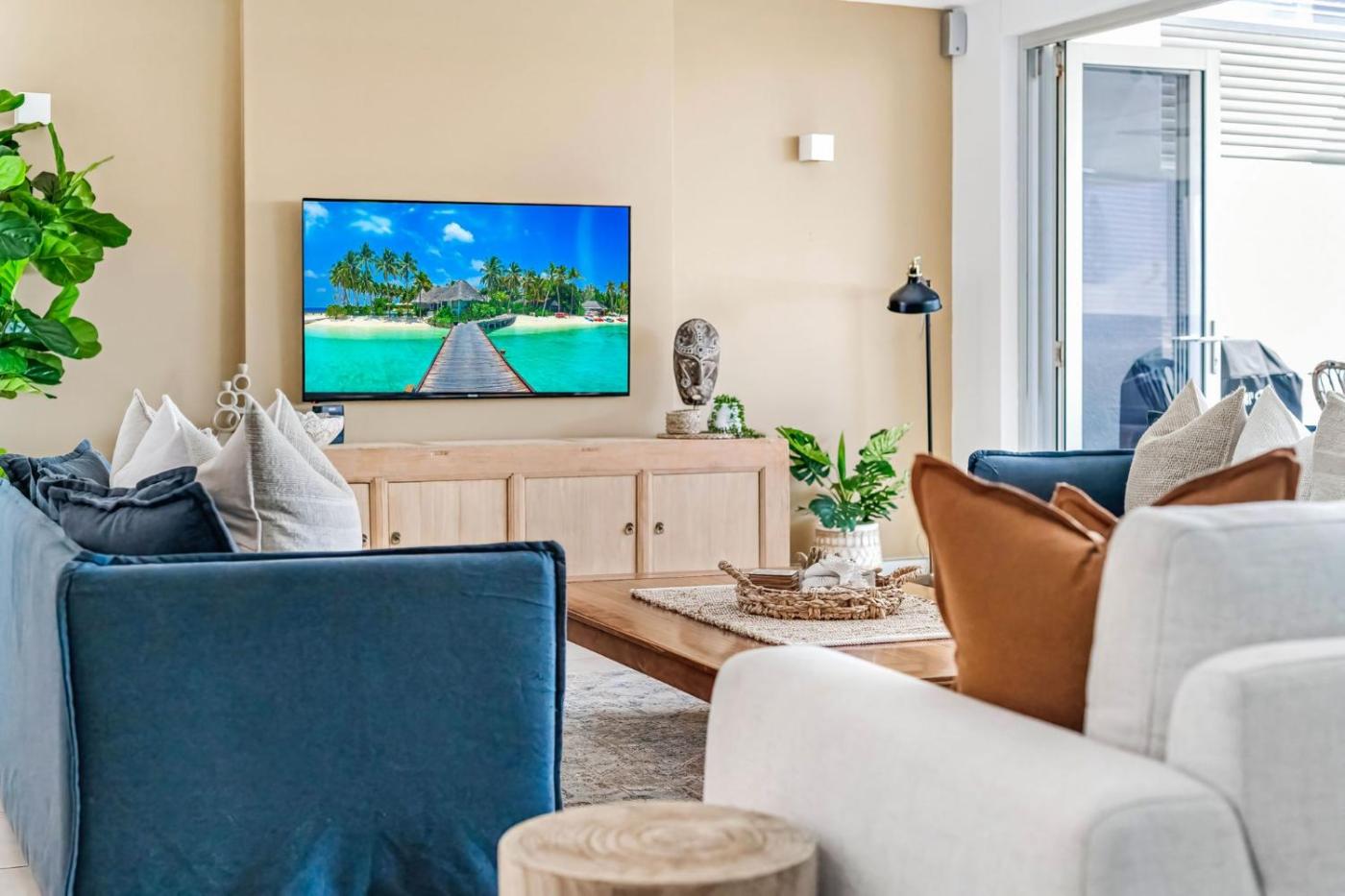 Four-Bedroom House. This holiday homes special feature is the hot tub. The spacious holiday home features 4 bedrooms and 3 bathrooms with a bath and free toiletries. Guests will find a stovetop, a refrigerator, a dishwasher and kitchenware in the fully equipped kitchen. The holiday home also offers a barbecue. The air-conditioned holiday home provides a flat-screen TV with streaming services, a washing machine, a coffee machine, tumble dryer as well as sea views. The unit offers 6 beds.