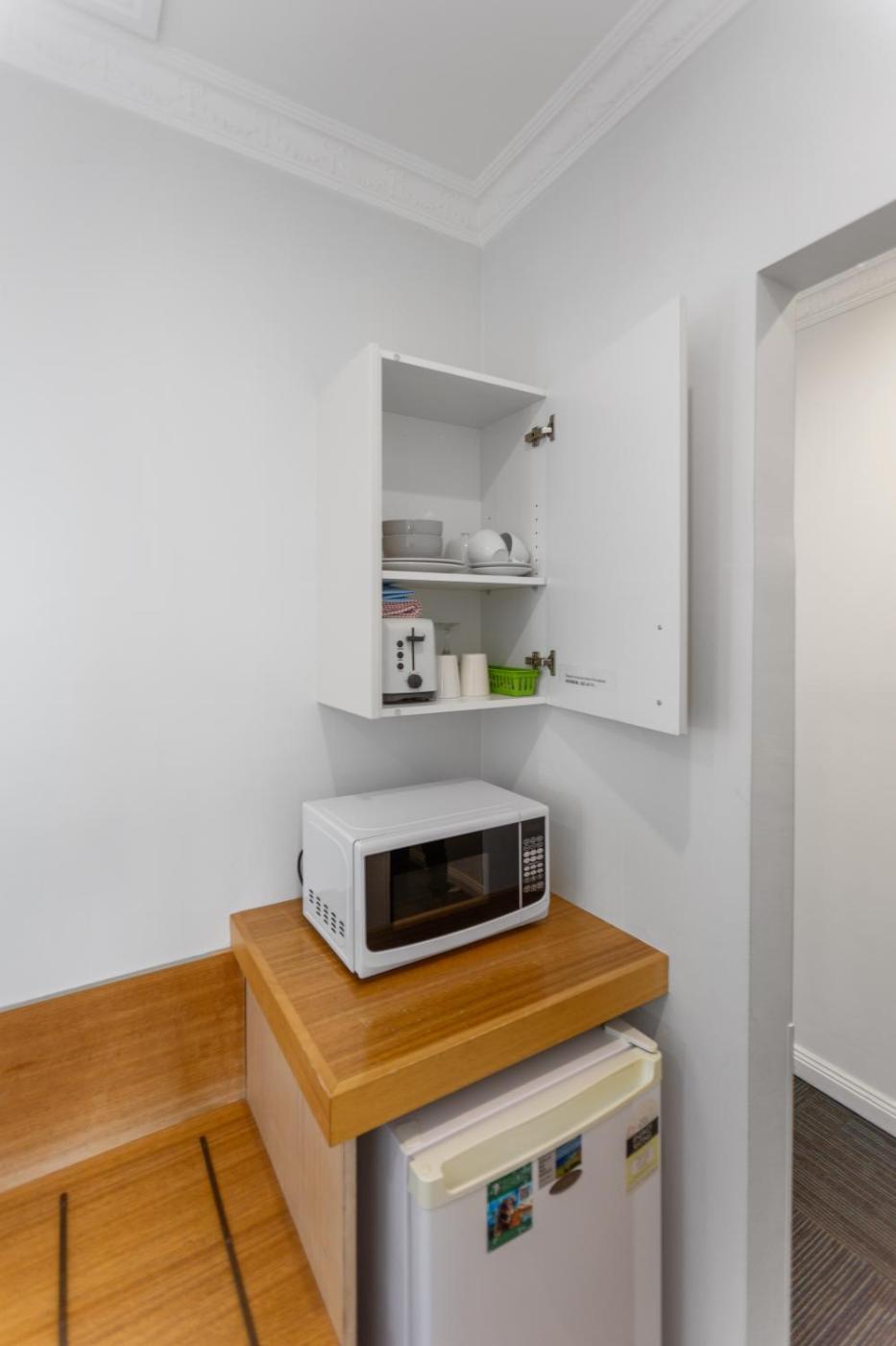 Standard Queen Room. This air-conditioned room features one queen sized bed and a 2-person sofa. There is a separate, basic kitchenette area with a bar fridge, microwave, toaster, kettle, plates and cutlery. Please note that this room has a maximum occupancy of 2 (see Hotel Policies). ;