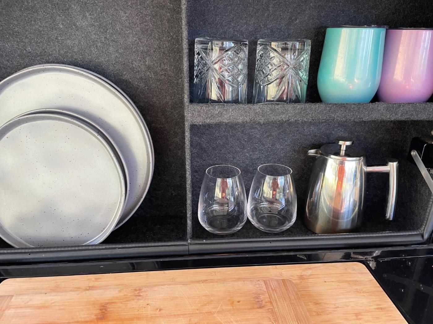 Accommodation options include fully self-contained cottages and glamping tents. Some cottages features a fireplace and a private patio.