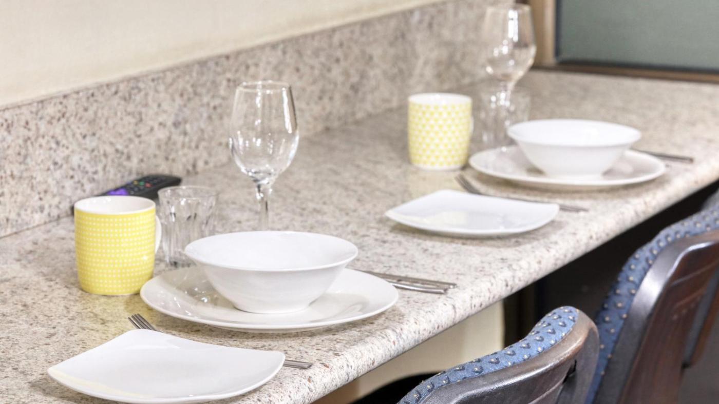 All plates, cutlery, glasses and other tableware have been sanitized