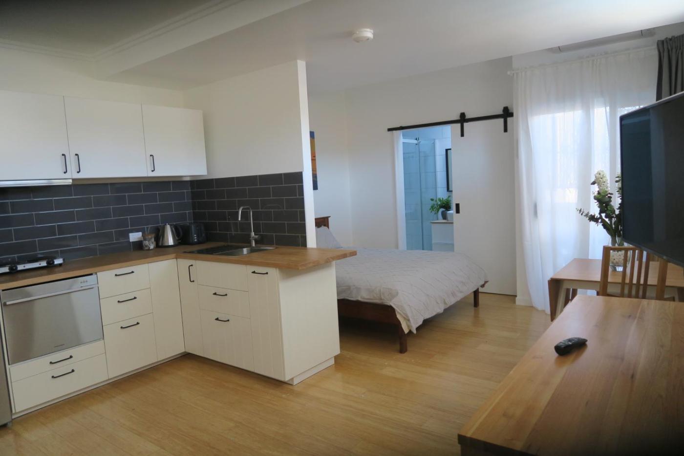 One-Bedroom Apartment. The air-conditioned apartment features 1 bedroom and 1 bathroom with a walk-in shower and a hairdryer. Guests will find a stovetop, a refrigerator, a dishwasher and kitchenware in the fully equipped kitchenette. The apartment also offers a barbecue. Featuring a terrace, this apartment also provides a washing machine, soundproof walls and a flat-screen TV with streaming services. The unit offers 2 beds. ;