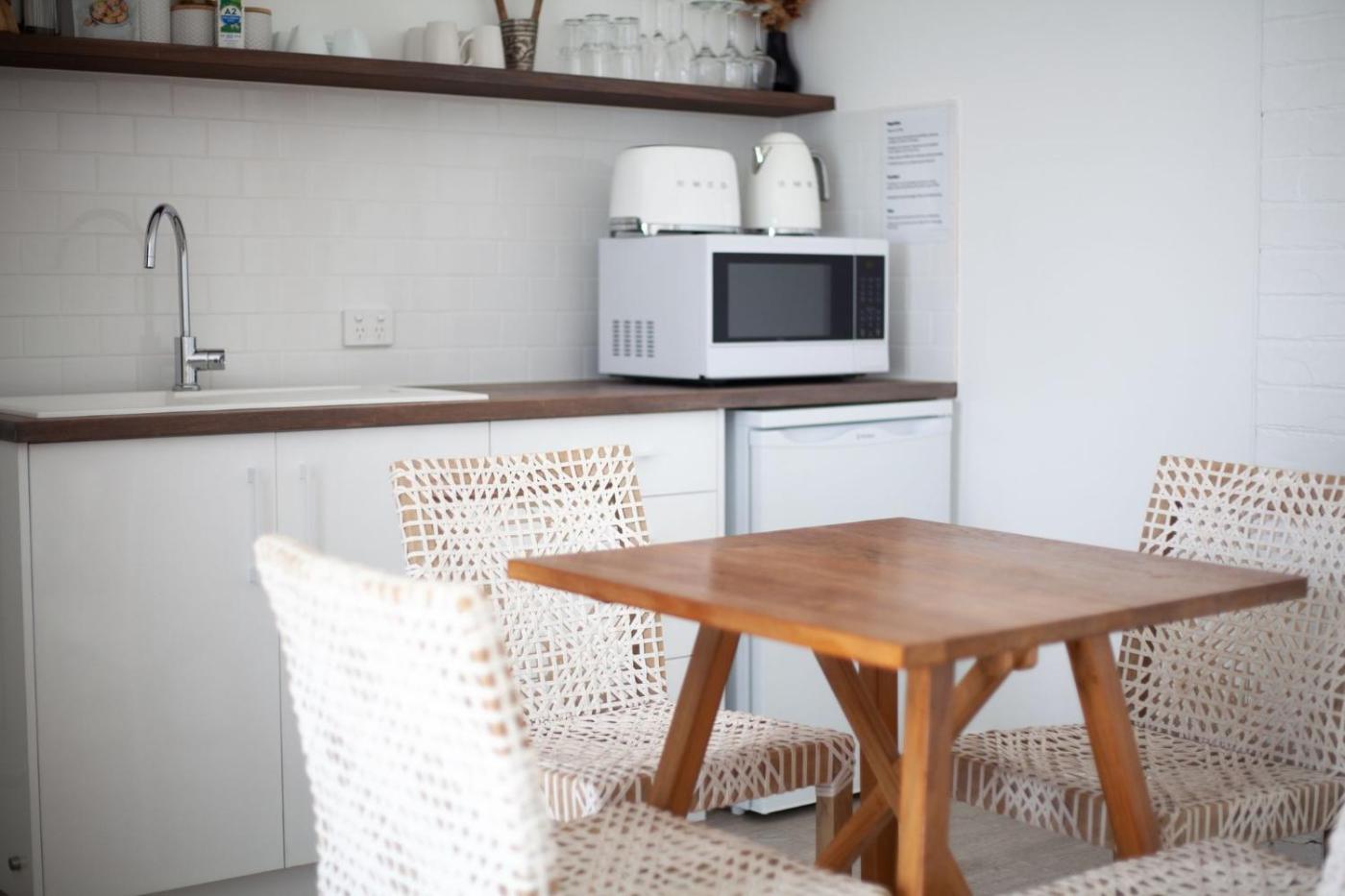 Deluxe King Studio. Guests will find a refrigerator, kitchenware, a microwave and a tea and coffee maker in the kitchenette. The studio also has a barbecue. This air-conditioned studio includes a flat-screen TV with streaming services, a private bathroom as well as a patio. The unit offers 2 beds.