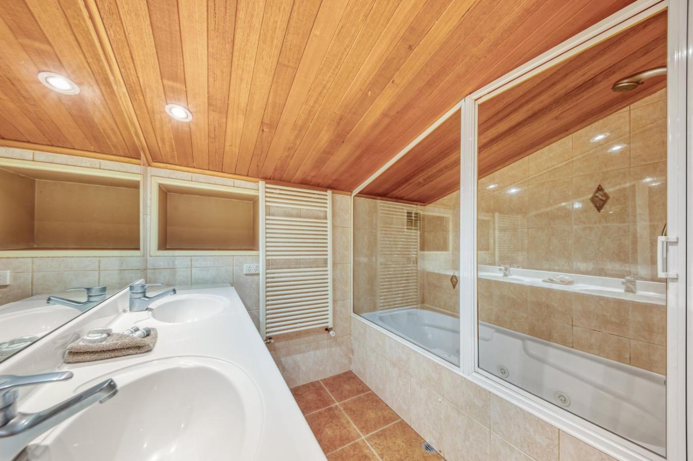 Three-Bedroom Penthouse Apartment - (8 Guests). This split-level apartment boasts a balcony offering stunning views towards the “Gully and International” ski runs and the Kiewa Valley. The spacious living area features an open fireplace, a large flat-screen TV, a DVD player and leather sofas. There is a fully equipped kitchen, a drying cupboard and individually controlled panel heaters. There are 3 bathrooms, including 2 with a spa bath.bedrooms offer luxurious bedding and bed linen, towels and pool towels are provided. This apartment includes a light daily servicing. Please note that the maximum occupancy is 8 guests. There is no capacity for additional guests.