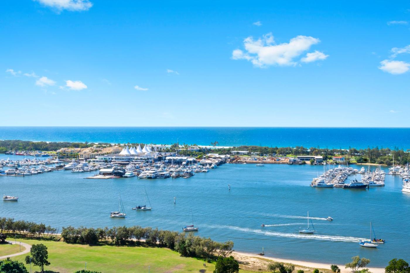 Brighton Shores is situated in Gold Coast’s vibrant Southport district, featuring picturesque panoramic views of the Broadwater marina, ocean and hinterland.