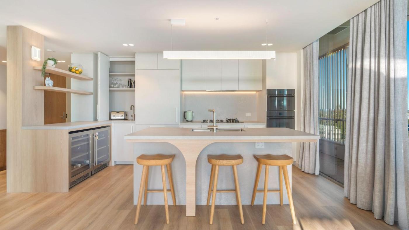 Two-Bedroom Apartment. This apartment features a pool with a view. Boasting 2 bedrooms and 2 bathrooms, this air-conditioned apartment features a well-fitted kitchen and a dining area. Guests can make meals in the kitchen that has a stovetop, a refrigerator, a dishwasher and kitchenware. Featuring a balcony with sea views, this apartment also offers a washing machine and a TV with streaming services. The unit has 3 beds.