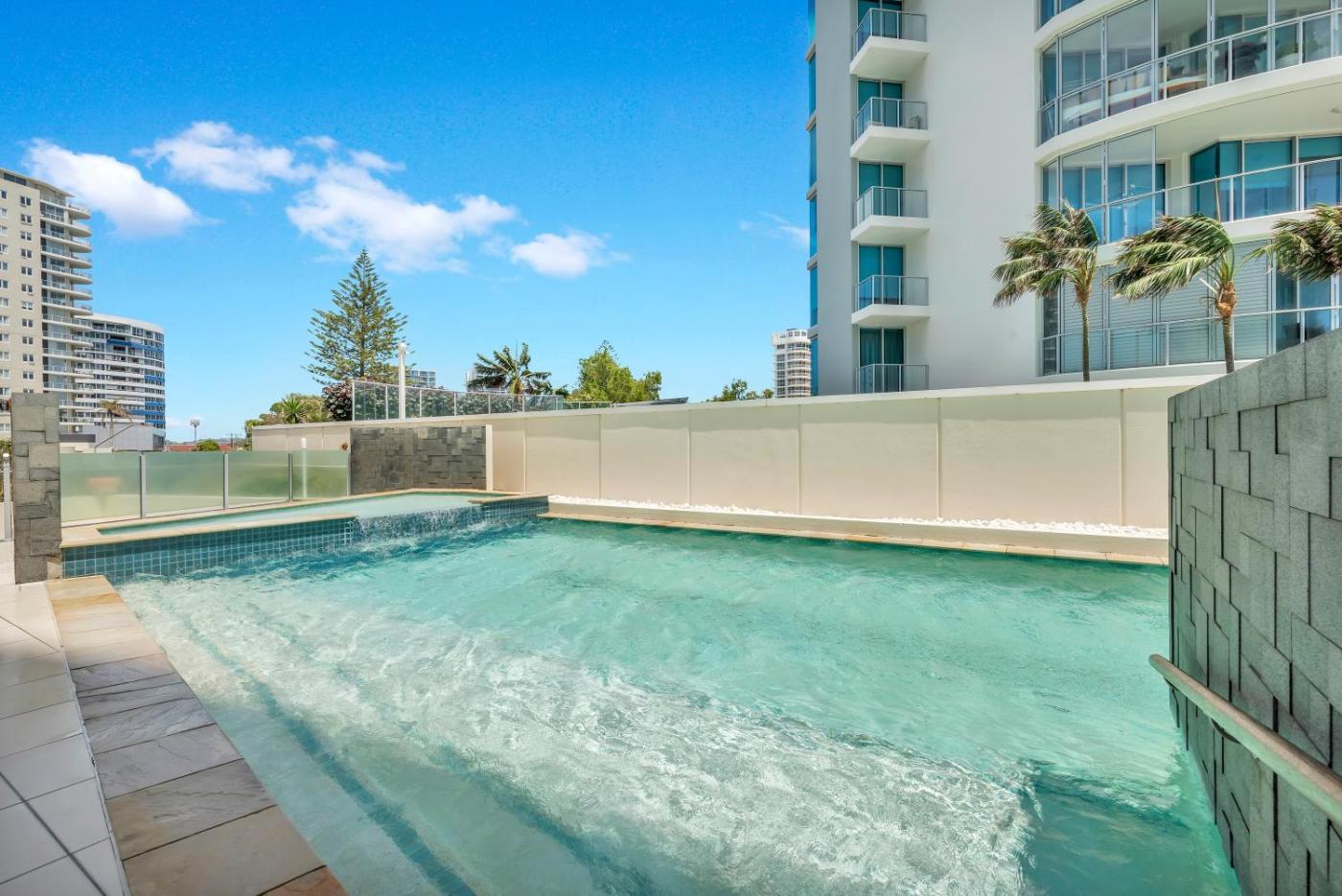 Luxury Three-Bedroom Apartment. Located on level 16, this luxurious fully self-contained apartment offers rooms with a spacious balcony and sweeping views over Coolangatta beach. If features 3 bathrooms and secure parking for two cars. ;