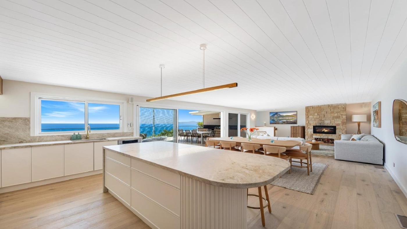 The holiday home comes with 6 bedrooms, 5 bathrooms, bed linen, towels, a TV with streaming services, a fully equipped kitchen, and a balcony with sea views. Guests can take in the ambience of the surroundings from an outdoor dining area or keep themselves warm by the fireplace on colder days. The property offers pool views.