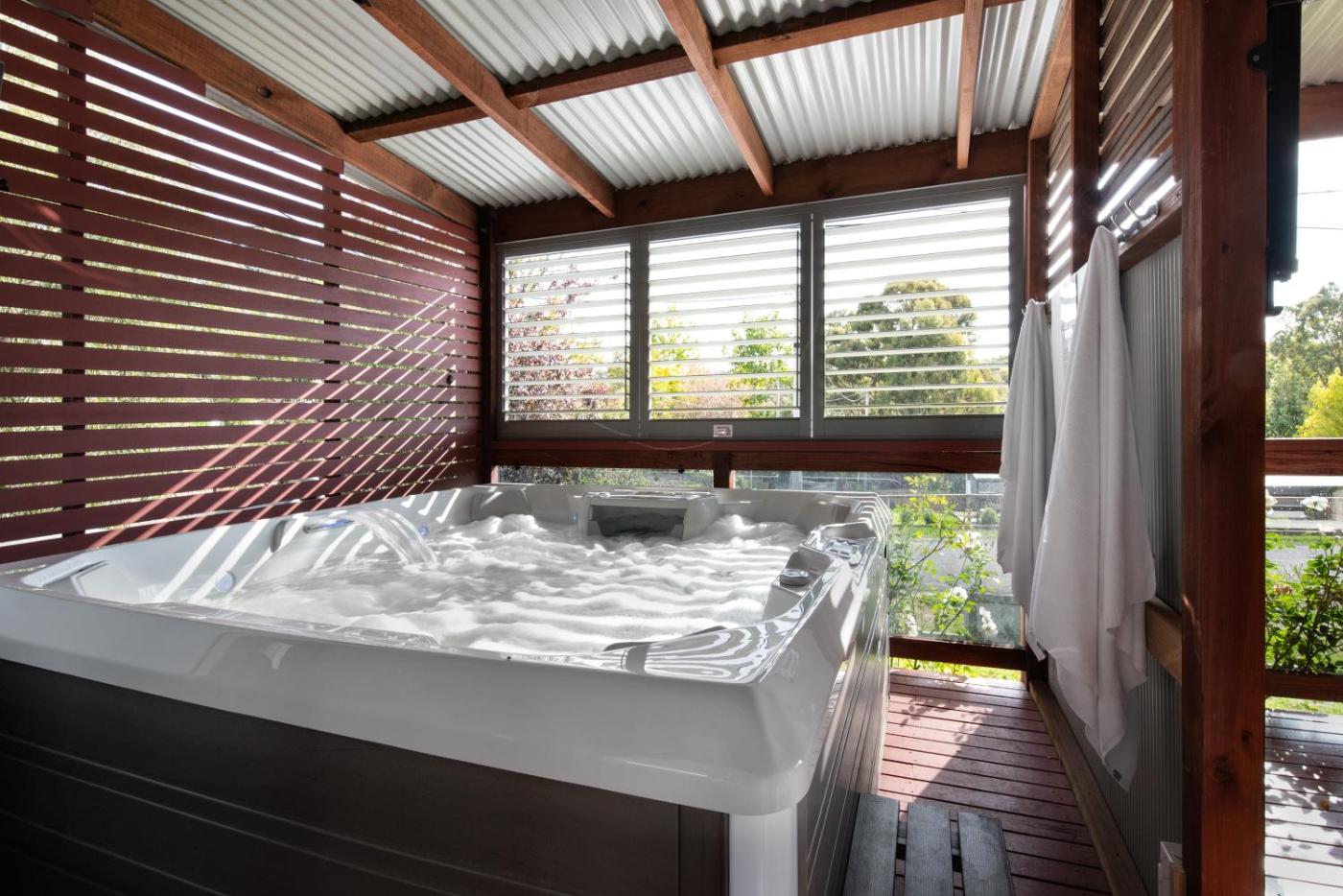 Holiday Home. This holiday homes standout features are the hot tub and spa bath. The air-conditioned holiday home has 2 bedrooms and 2 bathrooms with a shower and a hairdryer. Guests will find a refrigerator, kitchenware and a microwave in the kitchen. The holiday home also features a barbecue. Boasting a patio, this holiday home also offers a washing machine, a tea and coffee maker and a TV. The unit has 2 beds.