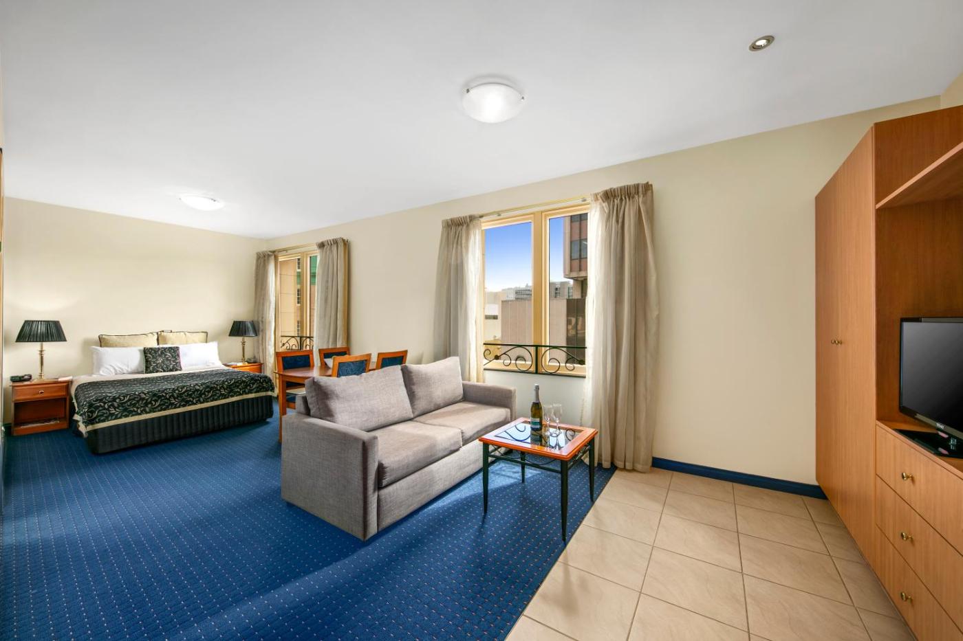 Studio Superior. This studio style apartment features a queen bed, kitchenette and spacious bathroom with shower over bath. Walk in shower available on request. Please note that the room rate is based on 2 guests. Maximum occupancy is 3 guests (see Hotel Policies). ;