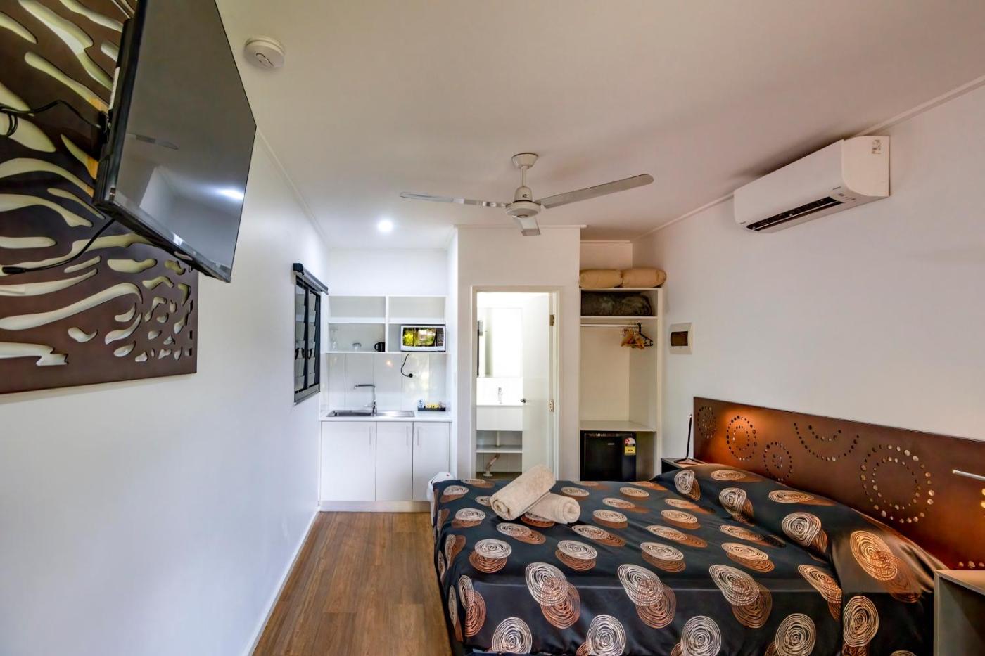 All air-conditioned rooms feature a TV, fridge and tea and coffee making facilities.rooms have a verandah and parking close by. Most rooms have a private bathroom, a kitchenette or ironing facilities. Towels and linen are provided.