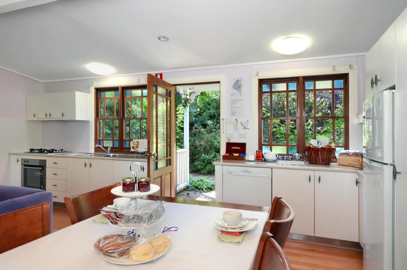 Billabong Cottage. This cottage features a fireplace and a patio offering outdoor furniture and views of the gardens and bird sanctuary. The private en suite bathroom features a free standing bath tub and a shower. There is a kitchen with an oven, refrigerator and dishwasher. Please note that the price is based on 2 guests. This room has no capacity for additional guests. Please note that this cottage is wheelchair accessible. Light breakfast provided - full breakfast and afternoon tea available on request at time of booking at additional cost. Please use the special request box when booking or the contact details found on the booking confirmation. ;