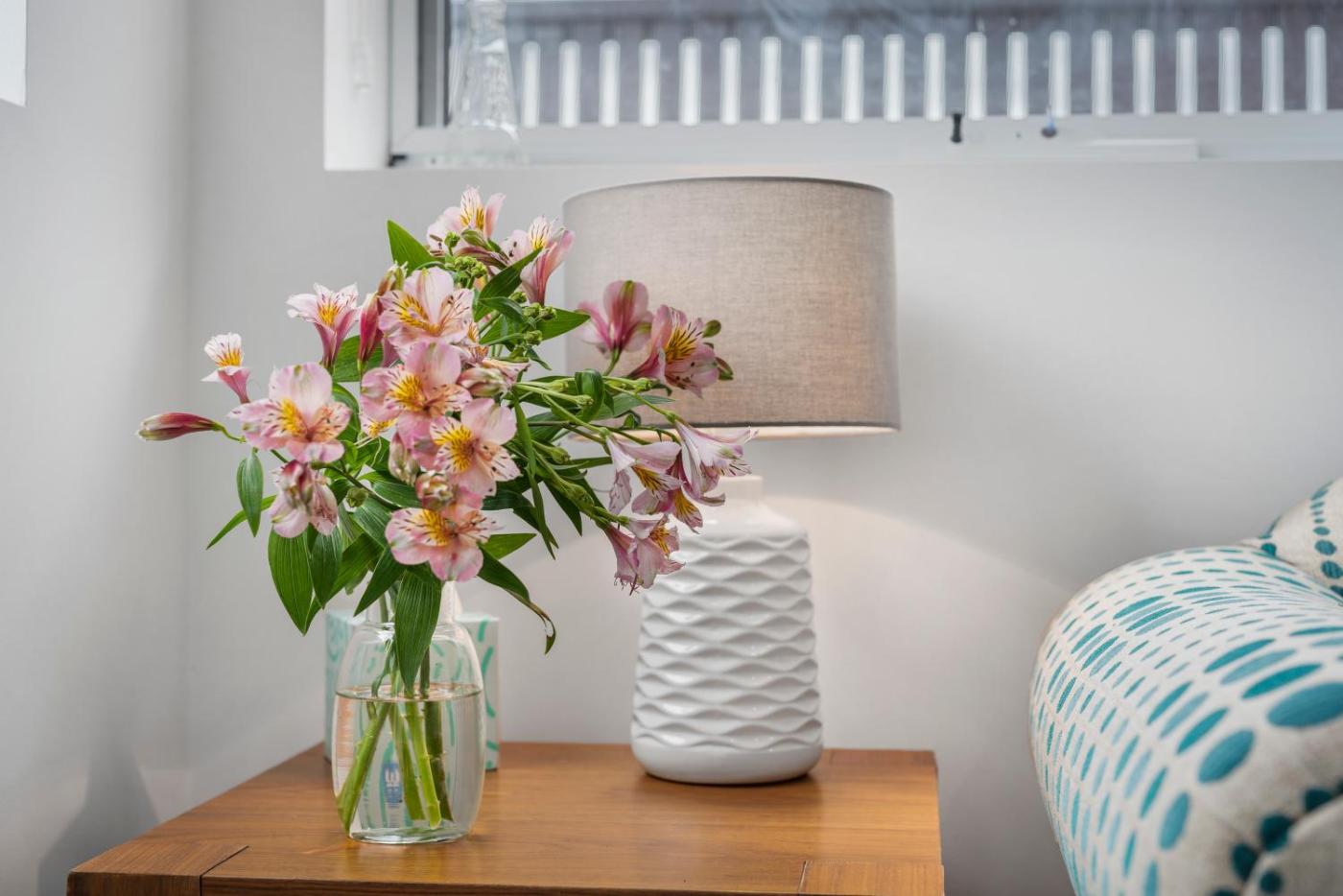 One-Bedroom Apartment. Featuring a private entrance, this air-conditioned apartment consists of 1 living room, 1 separate bedroom and 1 bathroom with a shower and a hairdryer. The well-fitted kitchen features a stovetop, a refrigerator, a dishwasher and kitchenware. The spacious apartment provides a washing machine, a seating area, an electric kettle, a flat-screen TV, as well as garden views. The unit offers 1 bed.
