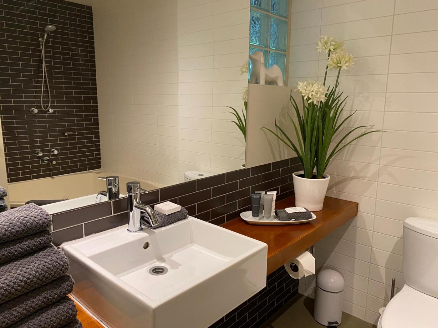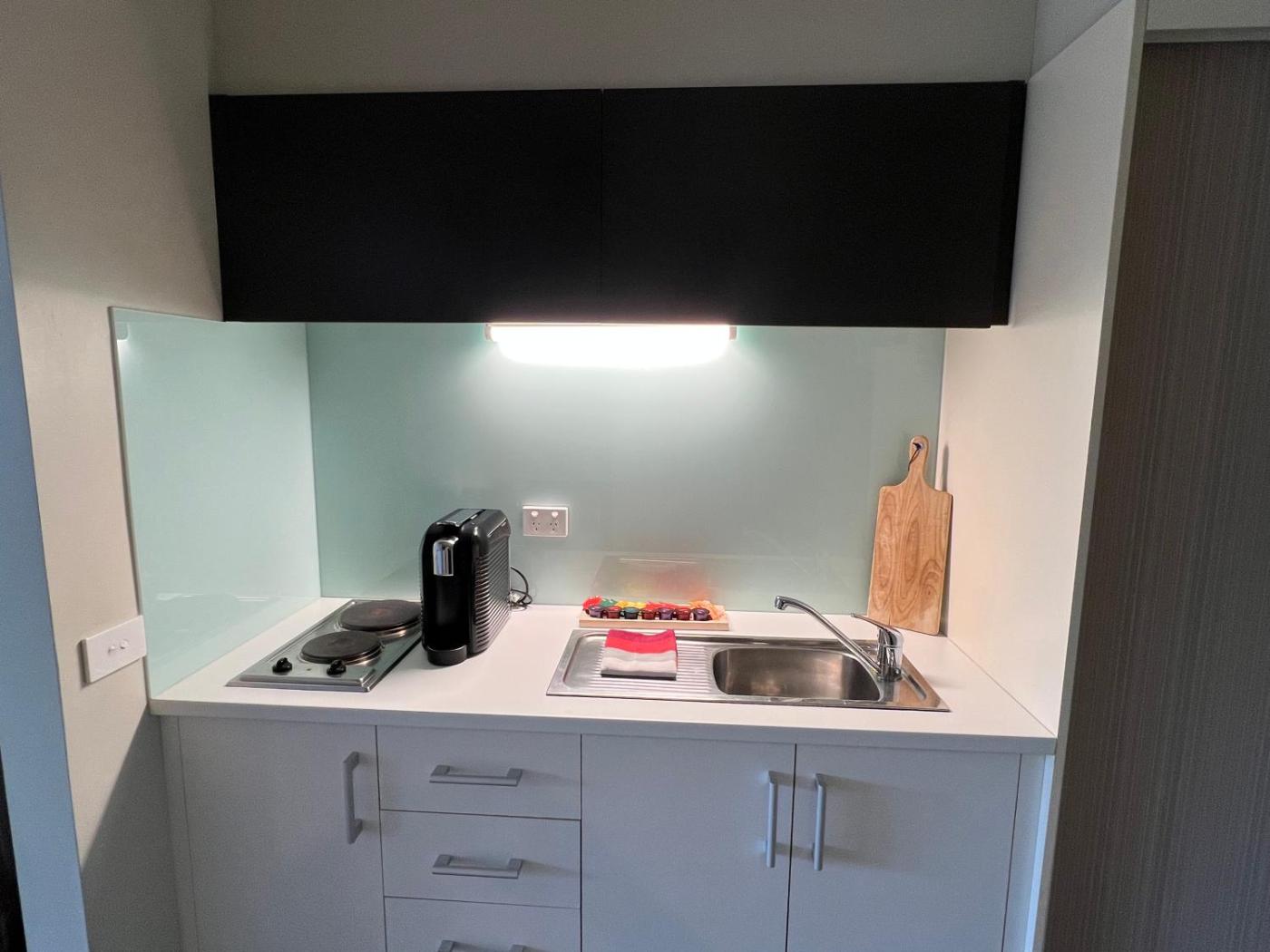 Deluxe King Studio. This apartment has decor inspired by the romance of Paris. It also includes a large corner spa bath, a private balcony and a fully equipped kitchenette. Access to laundry facilities, including a washing machine and a tumble dryer is available.