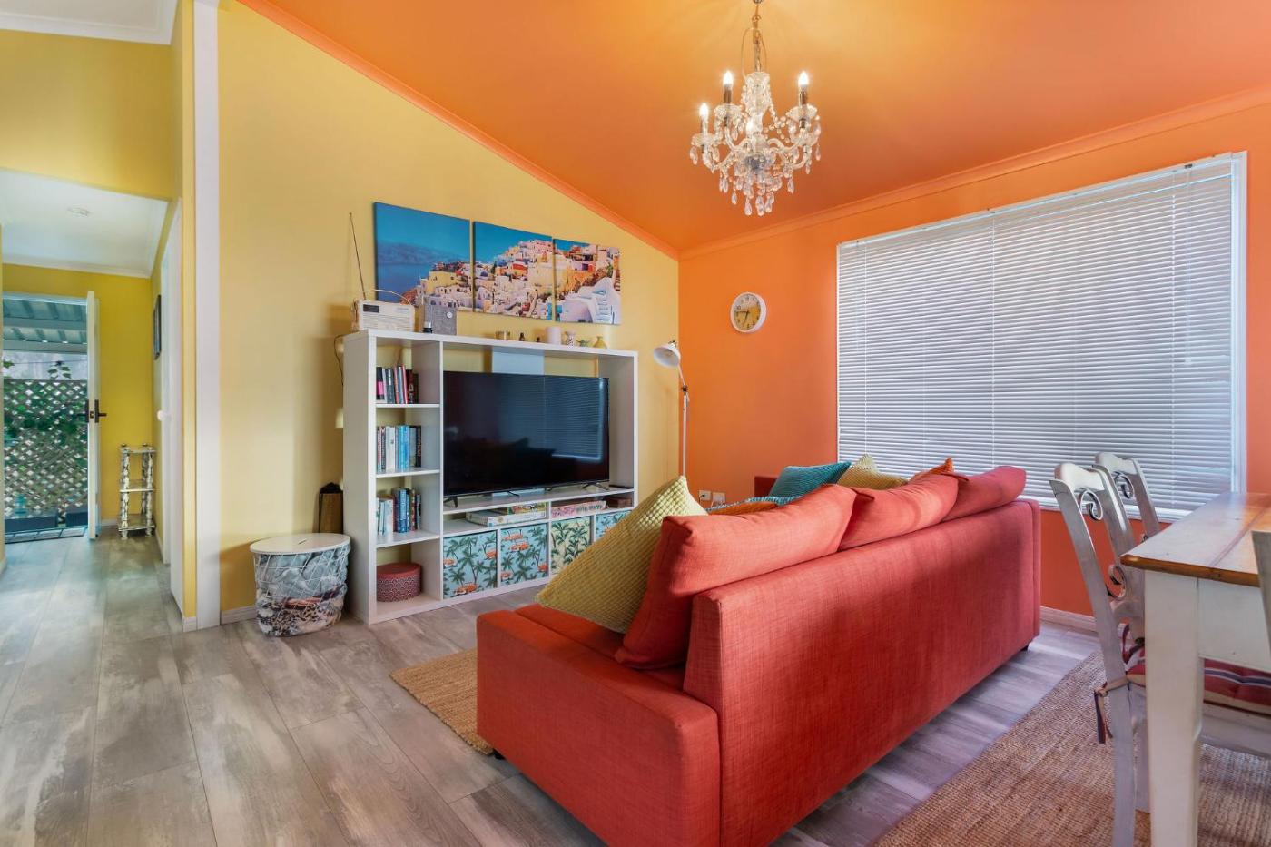 Two-Bedroom House. Boasting a private entrance, this air-conditioned holiday home includes 1 living room, 2 separate bedrooms and 1 bathroom with a shower and a hairdryer. Guests will find a stovetop, a refrigerator, a dishwasher and an oven in the kitchen. The holiday home also features a barbecue. This holiday home has a washing machine, TV with streaming services, garden views, as well as winechampagne for guests. The unit has 4 beds.