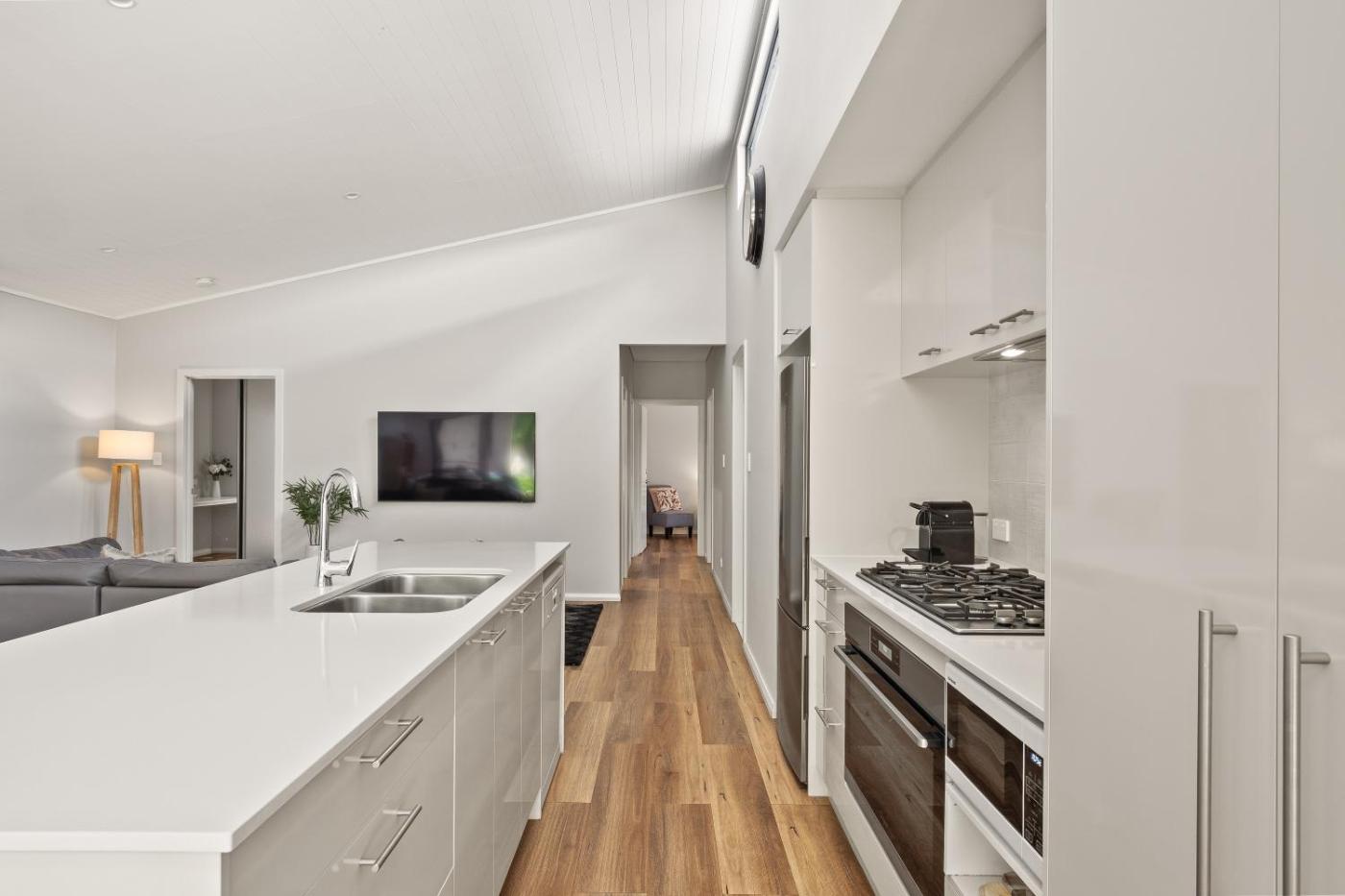 Three-Bedroom House. Boasting a private entrance, this air-conditioned holiday home includes 3 bedrooms and 2 bathrooms with a hairdryer. In the well-equipped kitchen, guests will find a refrigerator, a dishwasher, an oven and a microwave. The holiday home offers a washing machine, a tea and coffee maker, tumble dryer, a high chair for children, as well as a flat-screen TV. The unit has 3 beds.