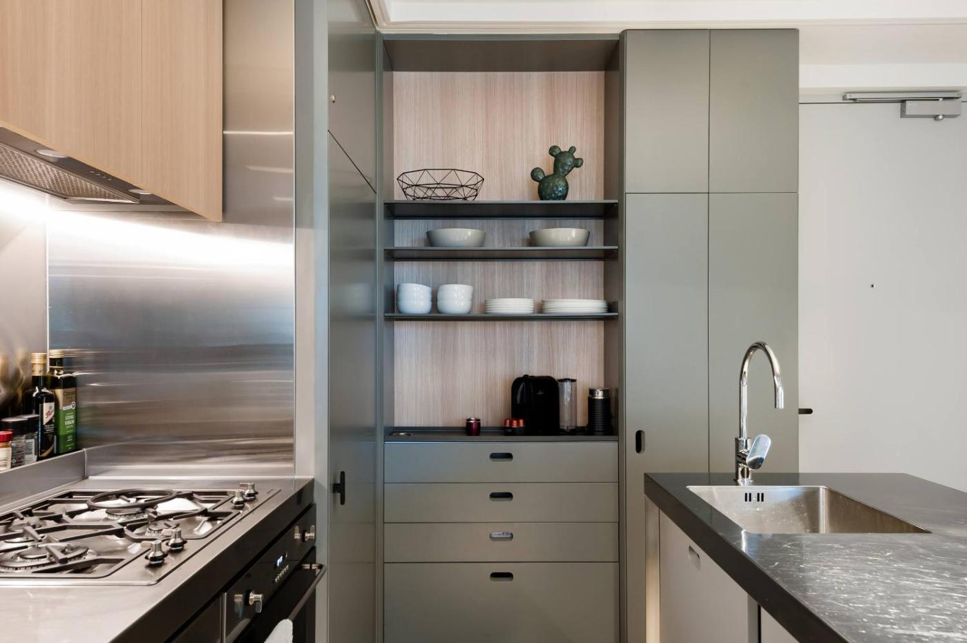 One-Bedroom Apartment. This air-conditioned apartment is comprised of 1 living room, 1 separate bedroom and 1 bathroom with a shower. The well-fitted kitchen features a stovetop, a refrigerator, a dishwasher and an oven. Featuring a balcony with garden views, this apartment also offers a washing machine and a flat-screen TV with streaming services. The unit offers 1 bed.