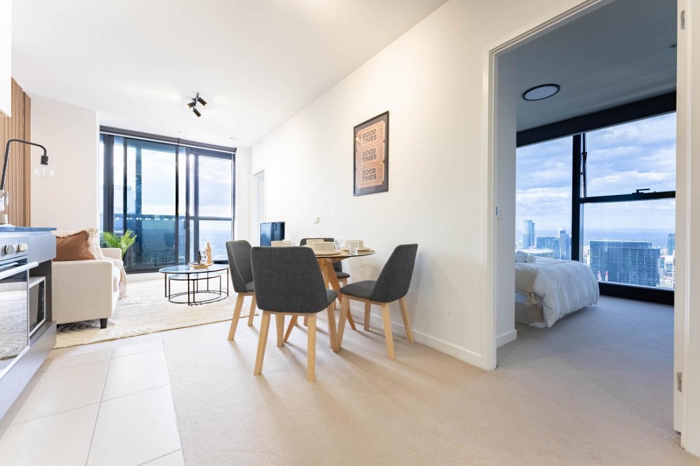 In the heart of Melbourne,within a short distance of Crown Casino Melbourne and Southern Cross Station, Luxury Collins St Apartment- 2BR w Balcony- High Floor offers free WiFi, air conditioning and household amenities such as a toaster and coffee machine. This property offers access to a balcony and free private parking. Sea views are a highlight at the apartments pool.