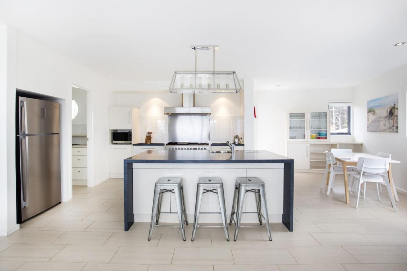Four-Bedroom House. Featuring a private entrance, this spacious holiday home also comprises 4 bedrooms, 3 bathrooms and a seating area. Meals can be prepared in the well-fitted kitchen, which comes with a dishwasher, a microwave and a toaster. The air-conditioned holiday home provides a TV, a washing machine, a dining area, a barbecue as well as sea views. The unit offers 5 beds.