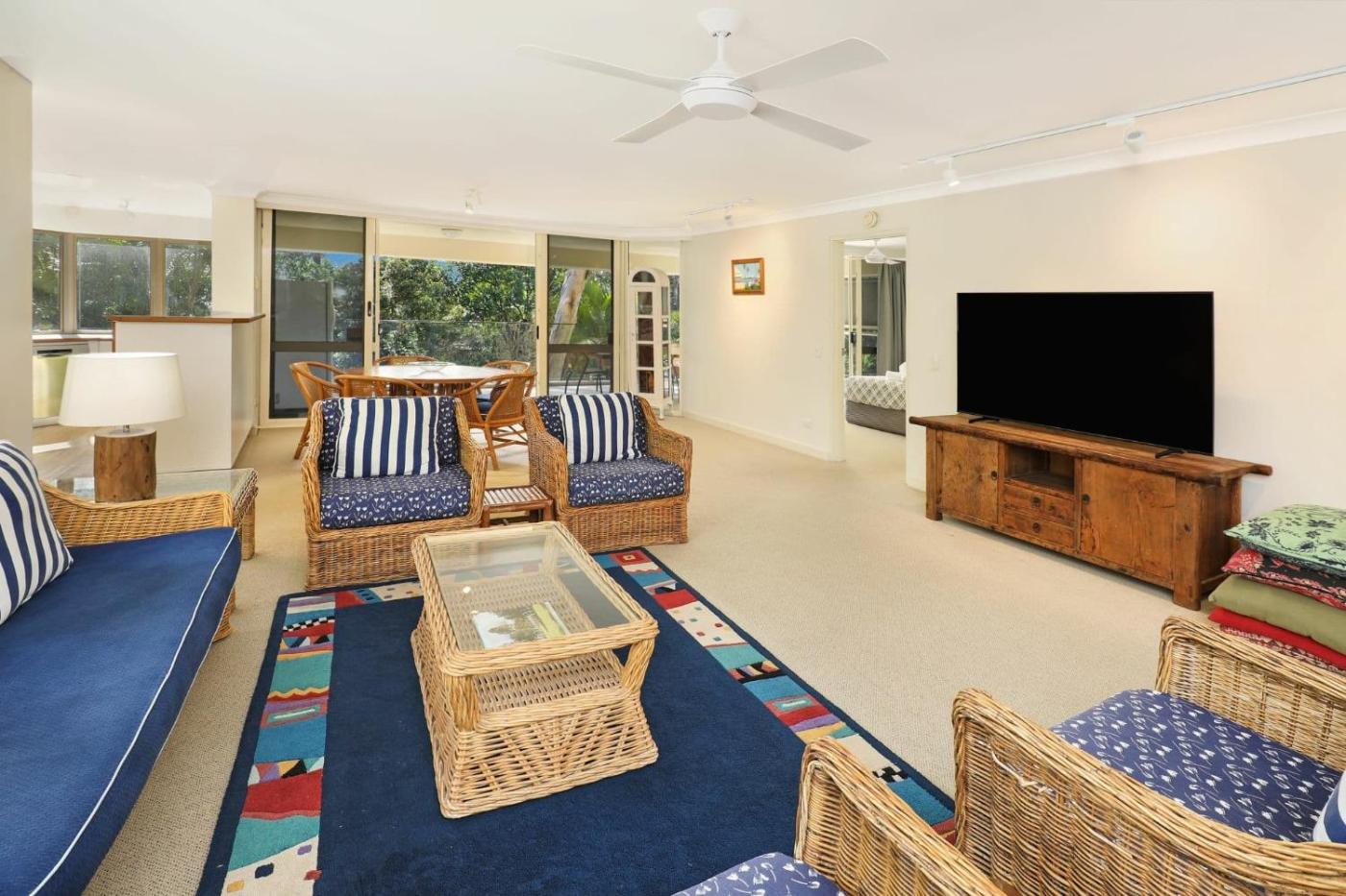 Three-Bedroom Apartment - Portsea North - External Apartment. This family room features a balcony, air conditioning and barbecue. This apartment does not have a BBQ or WiFi access. Please note this apartment is located a 3-minute walk from the main Spinnaker Quays complex. Check-in is at Spinnaker Quays. ;
