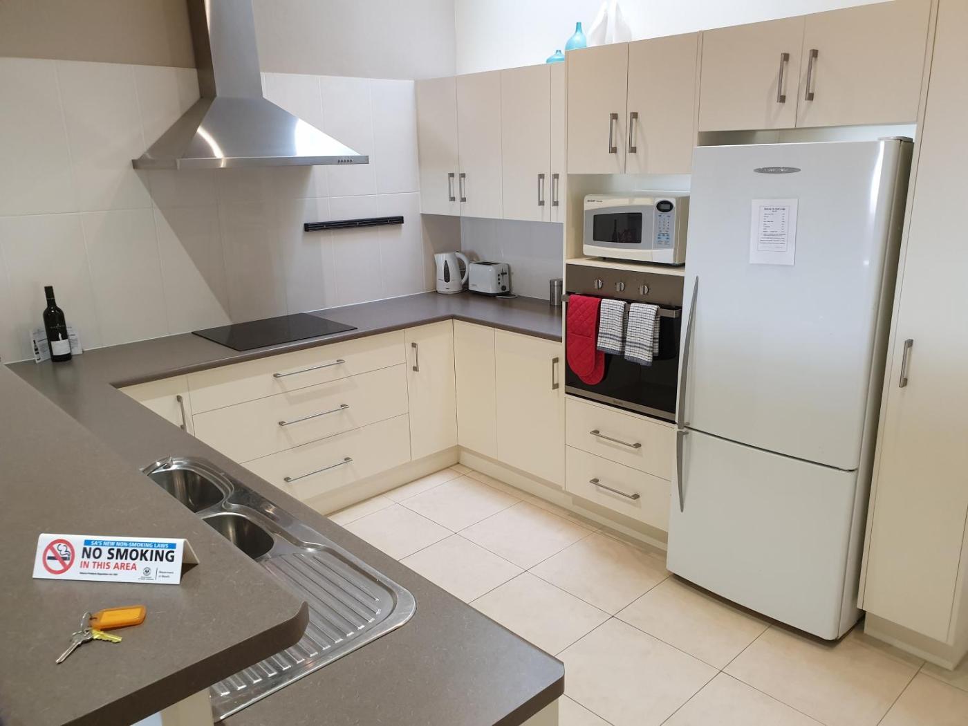 Executive Suite with Spa Bath. Welcome to one of Murray Bridge’s most distinguished accommodation offerings. The Executive Spa Suite is a spacious three-bedroom haven, ideal for business travellers, families, or groups seeking comfort and convenience. Centrally located in the heart of town, guests can easily walk to meetings, explore local shops and malls, dine at nearby restaurants, or enjoy the vibrant entertainment scene. This suite features a fully equipped kitchen with a full-sized fridgefreezer, oven, separate stovetop, microwave, dishwasher, filtered water, and generous bench and cupboard space. A stylish six-seater dining table makes shared meals effortless. Each room includes free Wi-Fi and a mini bar stocked with locally sourced selections, while the spa-inspired bathroom offers a relaxing retreat after a busy day. Whether youre here for work or leisure, the Executive Spa Suite delivers space, style, and a prime location—making it one of Murray Bridge’s finest stays.