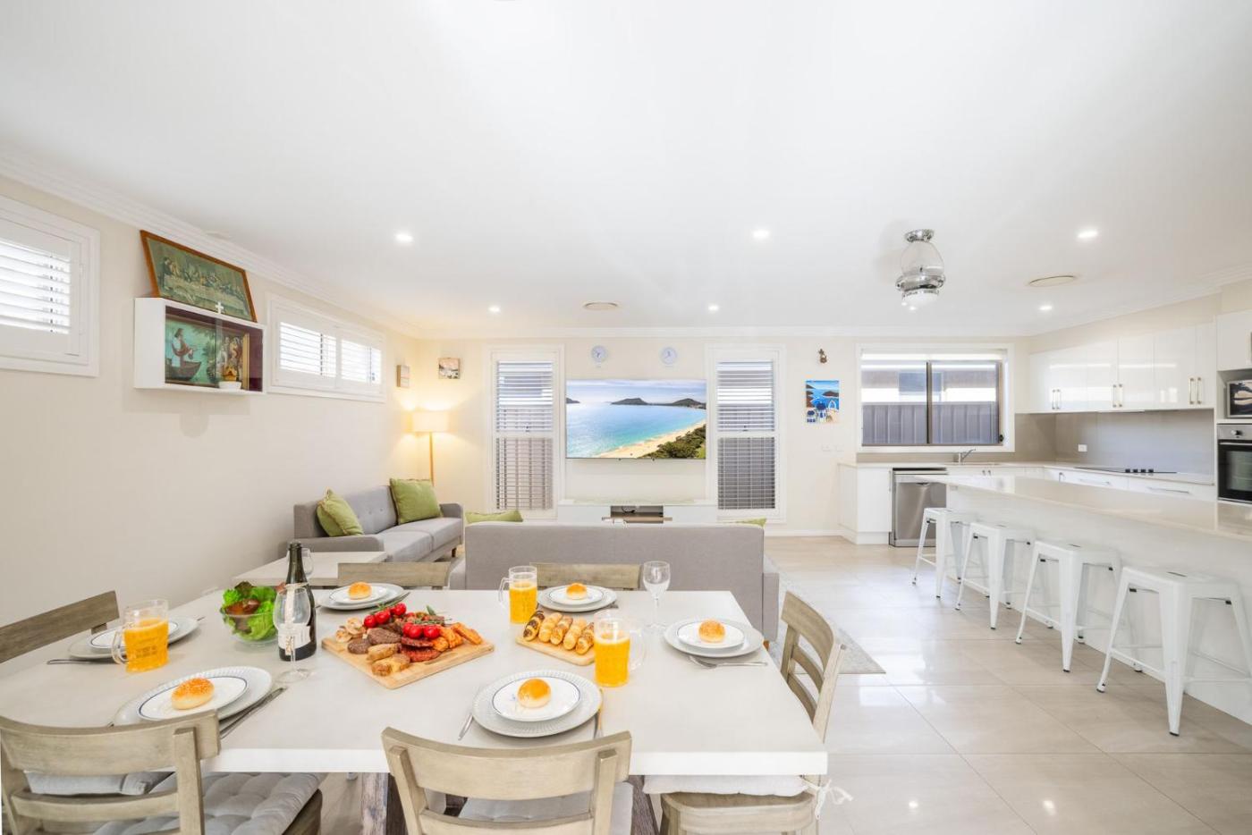 Any abuse of threatening behavior towards staff or contractors will result in immediate termination of stay without a refund. Any booking for more than 21 nights will require a mid-stay clean at guest cost. The agent is not responsible, nor has control over building and renovation work by neighbouring properties and cannot issue refunds in such circumstances. The guest acknowledges that they are required to complete an online check in form prior to the day of arrival. ID such as a license is required. Feel free to blur address on license. This information is removed from our systems 14 days after check out. There is a $3000 security deposit taken during schoolies period that is taken prior to arrival. Unless specifically stated the property does not provide linen such as sheets, towels, pillowcases, tea towels, bathmats. We can arrange the hire of these at an additional cost. Guests locked out of the property should contact our office on 02 4980 4400 to arrange collection of a spare key at a cost of $80. Any defects, non working items, and cleaning issues must be notified to the agent upon first arriving a the property.This property is located in a residential area and guests are asked to refrain from excessive noise.