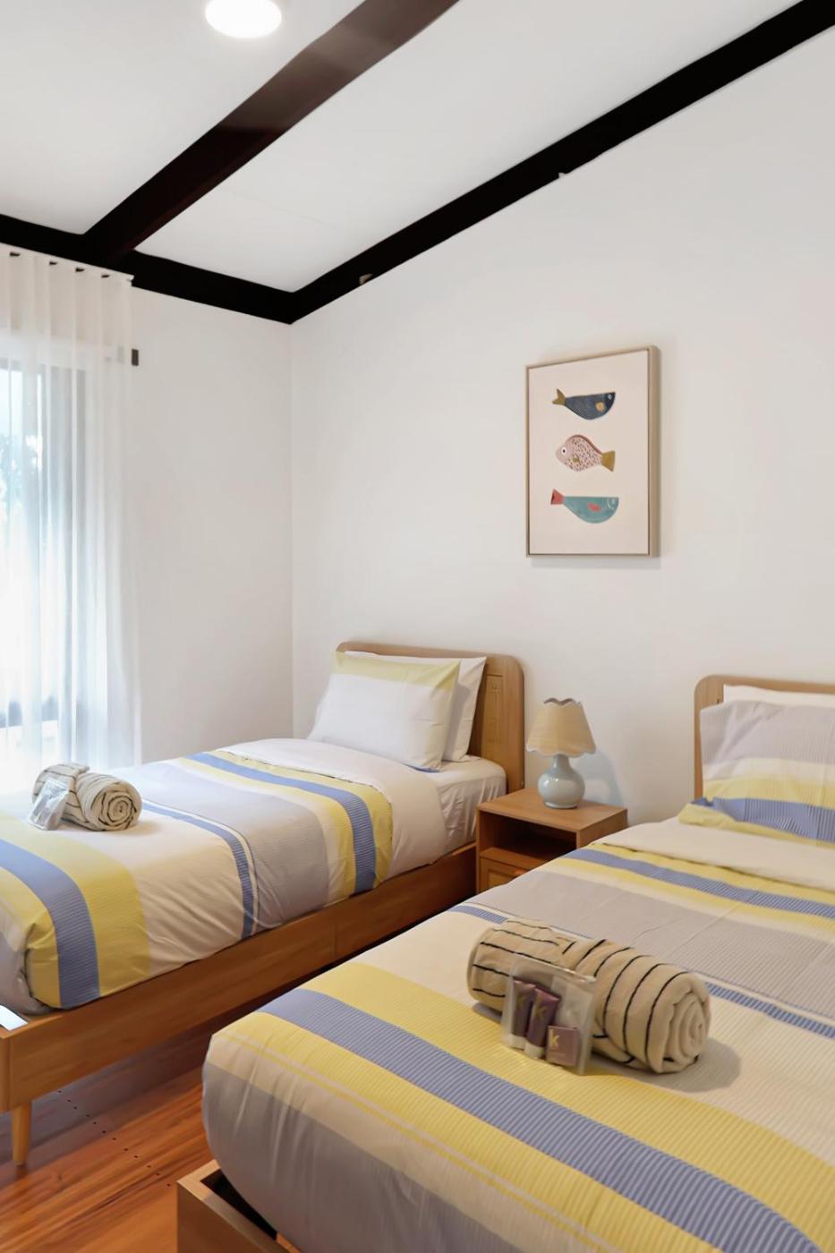 Three-Bedroom House. Boasting a private entrance, this air-conditioned holiday home features 1 living room, 3 separate bedrooms and 2 bathrooms with a bath and a shower. The well-fitted kitchen has a stovetop, a refrigerator, an oven and a microwave. The spacious holiday home features a flat-screen TV with streaming services, a washing machine, a tea and coffee maker, a seating area as well as sea views. The unit has 4 beds.