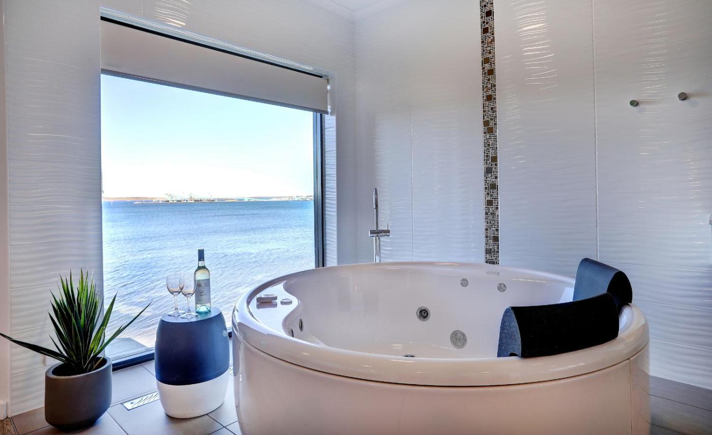 Studio with Spa Bath. This studio provides a hot tub. The well-fitted kitchenette has a stovetop, a refrigerator, kitchenware and a microwave. The spacious studio offers air conditioning, a seating area, a balcony with sea views as well as a private bathroom boasting a bath. The unit has 1 bed. ;