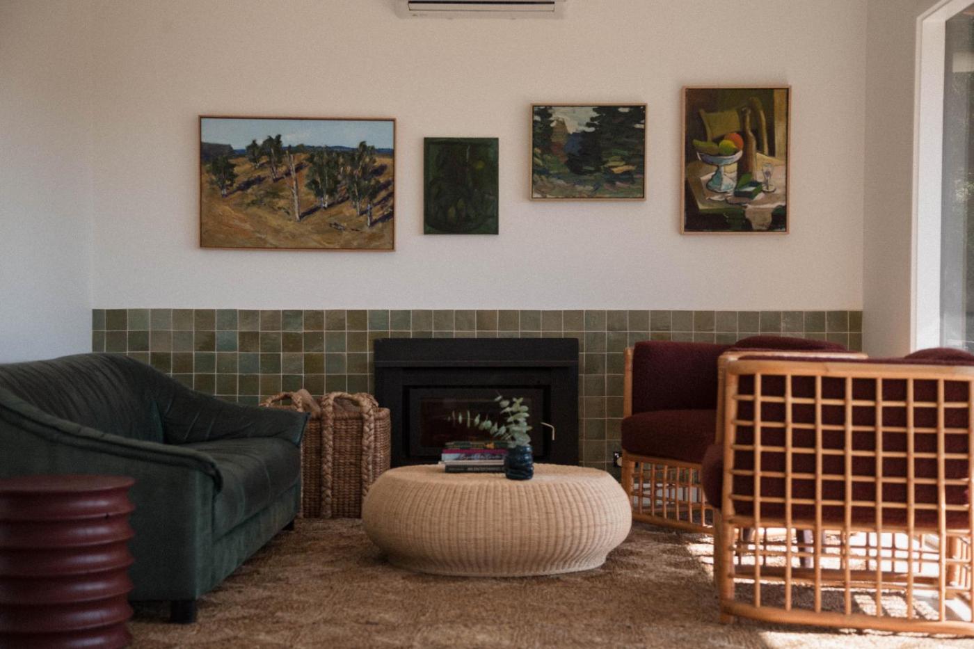 The farm stay has an outdoor fireplace and a picnic area.