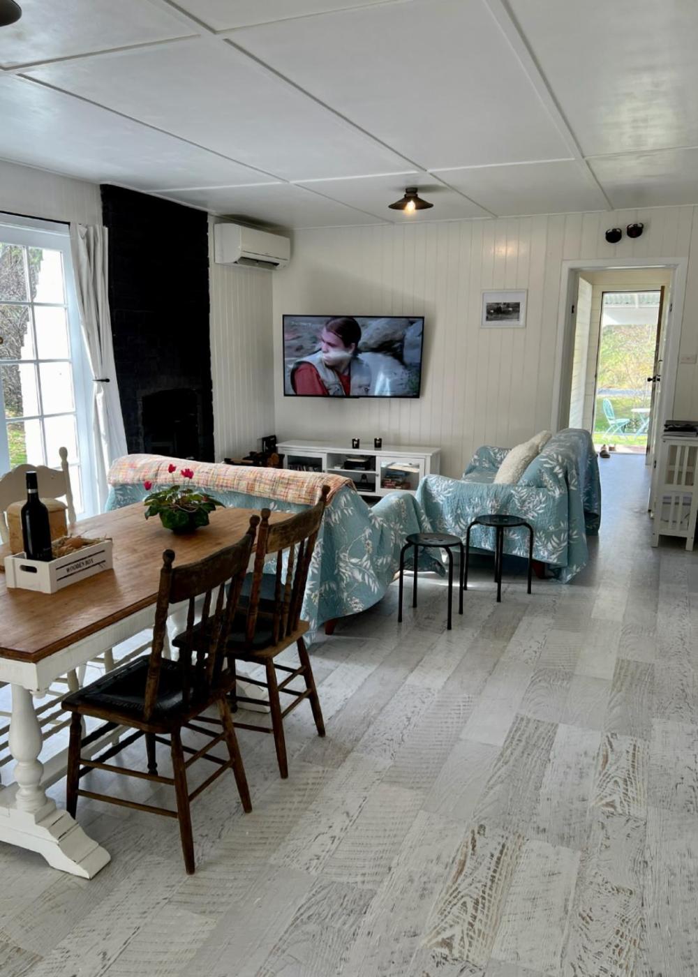 One-Bedroom House. This holiday home features a fireplace. Boasting a private entrance, this air-conditioned holiday home features 1 living room, 1 separate bedroom and 1 bathroom with a shower and a hairdryer. Guests will find a stovetop, a refrigerator, kitchenware and an oven in the fully equipped kitchen. The holiday home also comes with a barbecue. The spacious holiday home features a flat-screen TV, a tea and coffee maker, a seating area, a wardrobe as well as garden views. The unit has 1 bed.