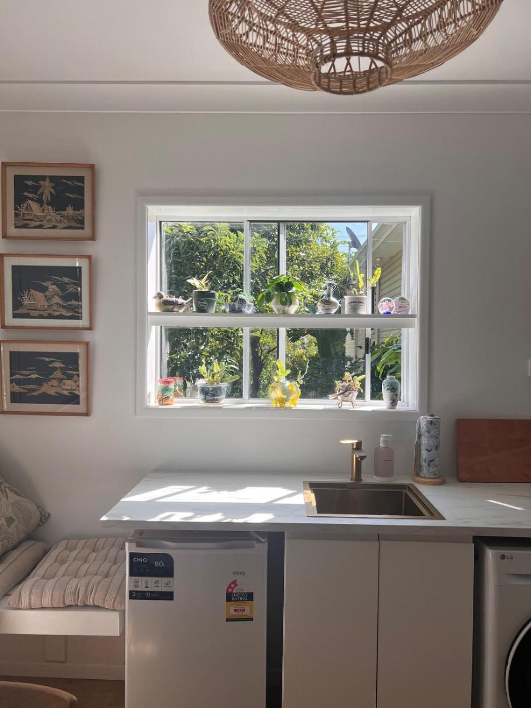 One-Bedroom House. A kitchenette fitted with a refrigerator, a microwave and a toaster is available for cooking and storing food. The air-conditioned holiday home features a flat-screen TV with streaming services, a washing machine, a private entrance and a tea and coffee maker. The unit has 1 bed.