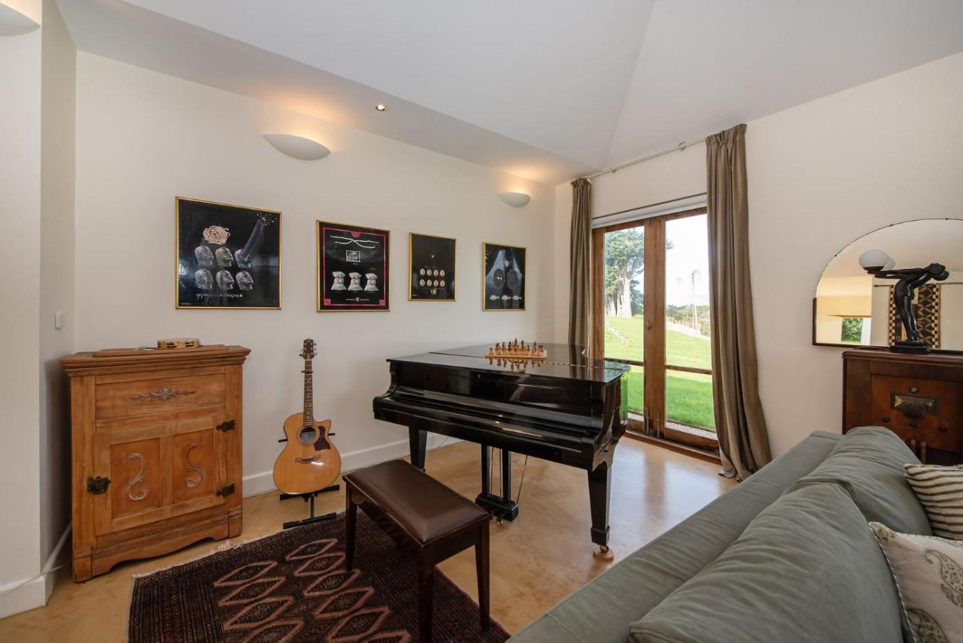 The holiday home has 6 bedrooms, 3 bathrooms, bed linen, towels, a flat-screen TV with cable channels, a dining area, a fully equipped kitchen, and a balcony with sea views. Guests can take in the ambience of the surroundings from an outdoor dining area or keep themselves warm by the fireplace on colder days. A dressing room and laundry service is also available.