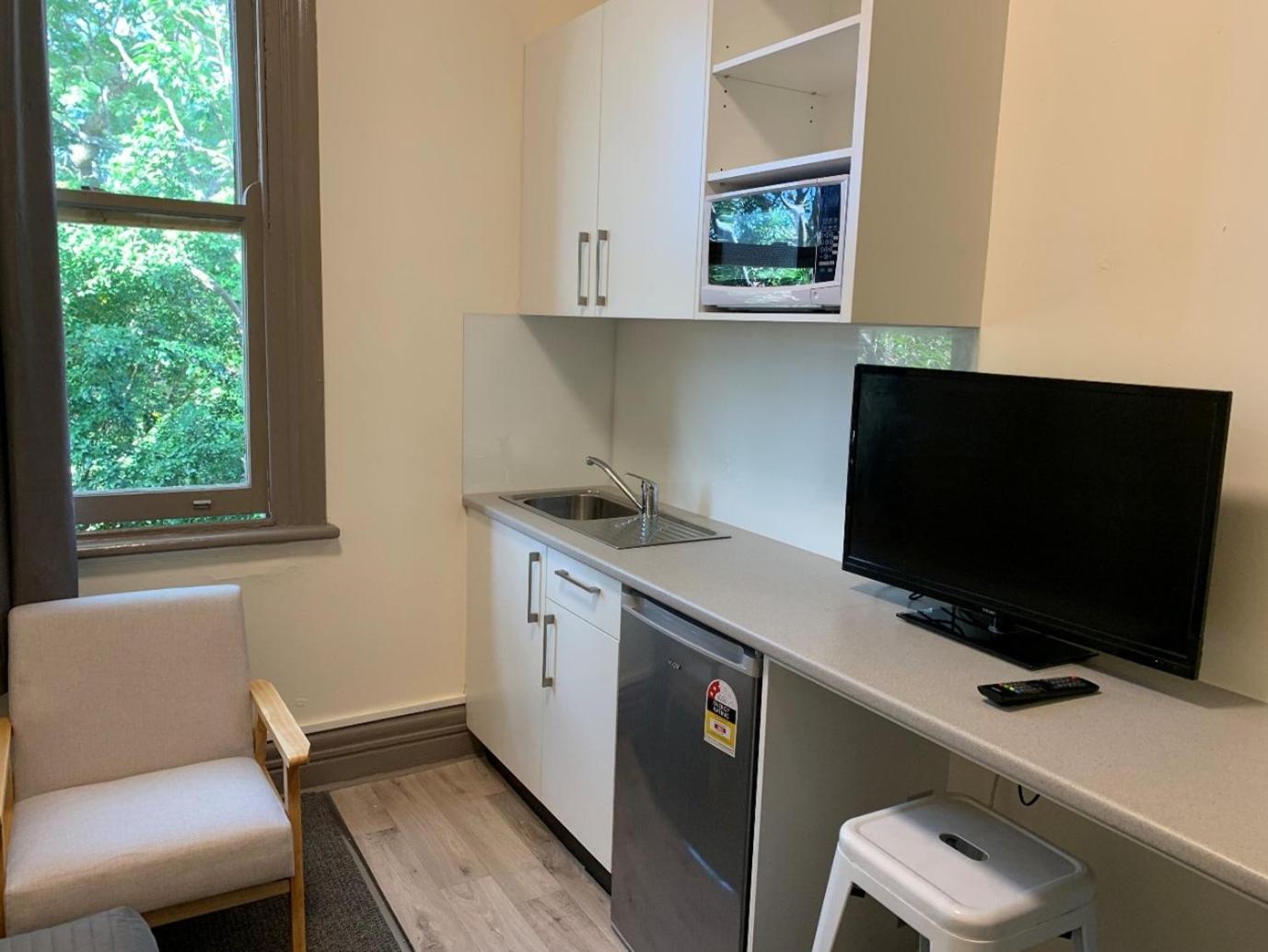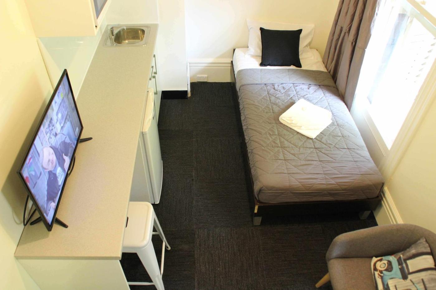 Single Room. In the fully equipped kitchenette, guests will find a refrigerator, kitchenware, a microwave and an electric kettle. The single room features a wardrobe, a carpeted floor, heating, as well as a flat-screen TV. The unit has 1 bed. ;