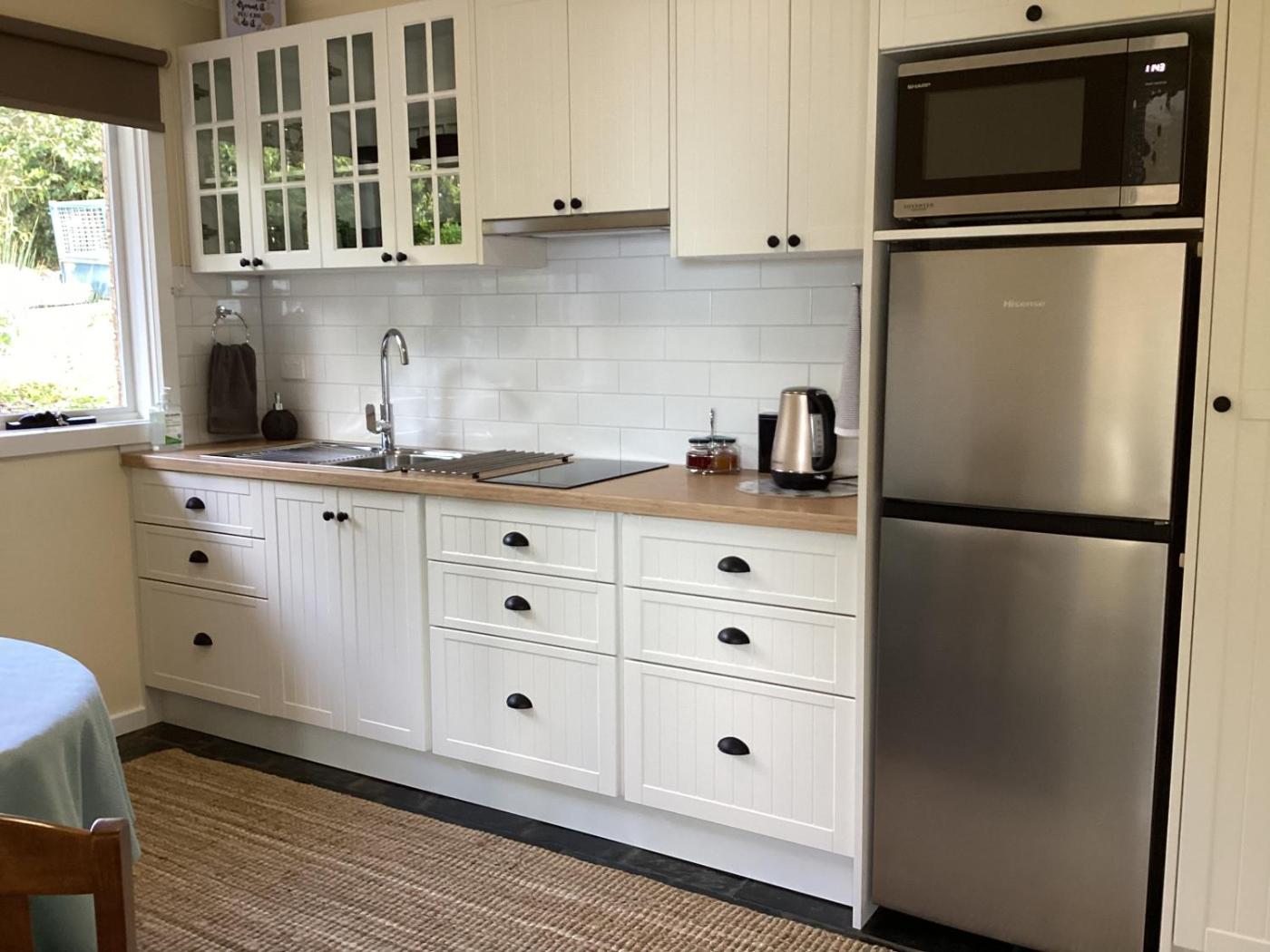 The guest house comes with a flat-screen TV. The kitchenette features a microwave, a toaster and a fridge and there is a private bathroom with bathrobes and slippers. The accommodation is non-smoking.