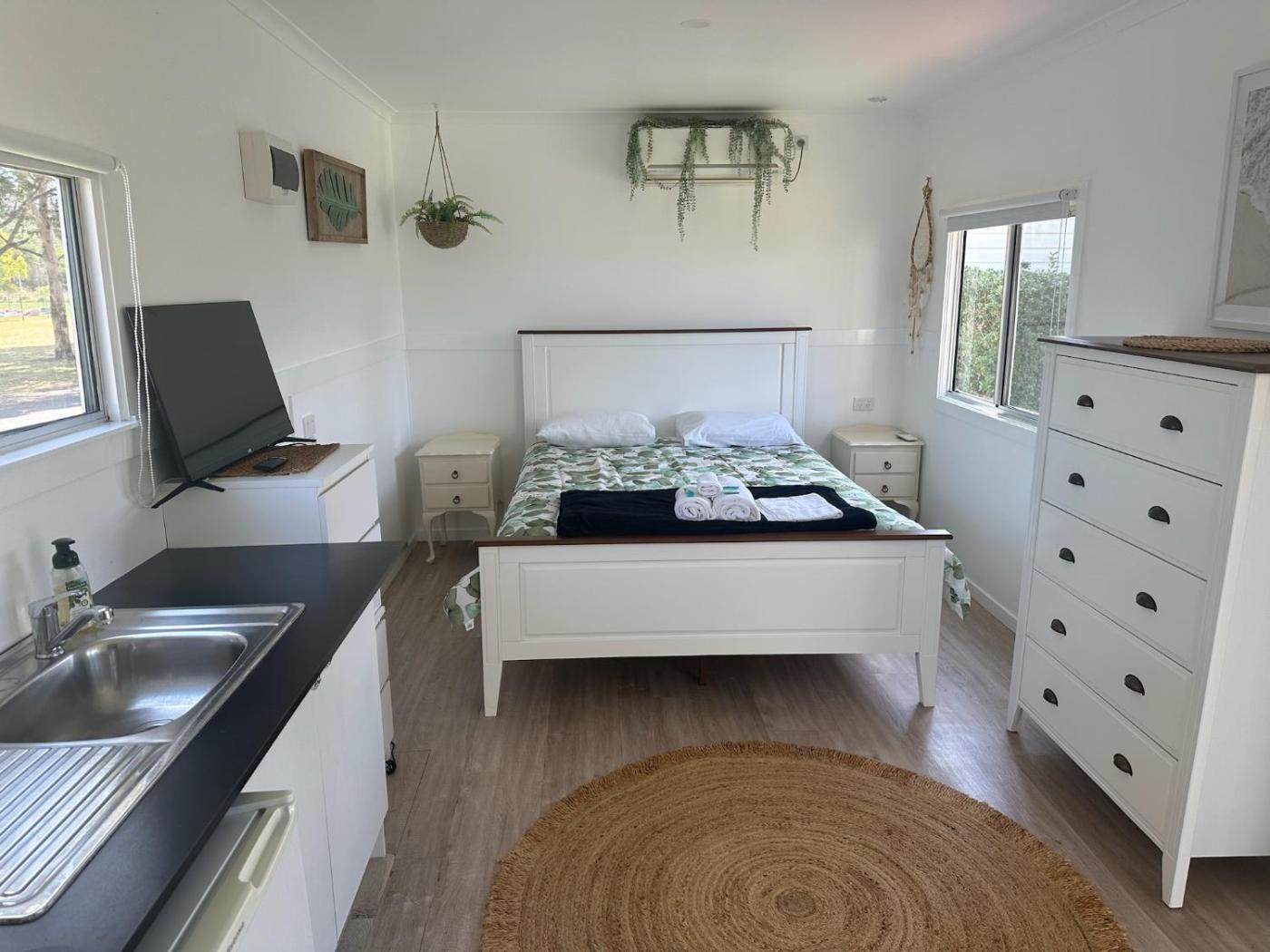 At the campground, the units are fitted with a wardrobe. There is also a well-fitted kitchen in some of the units equipped with an oven, a microwave, and a toaster.