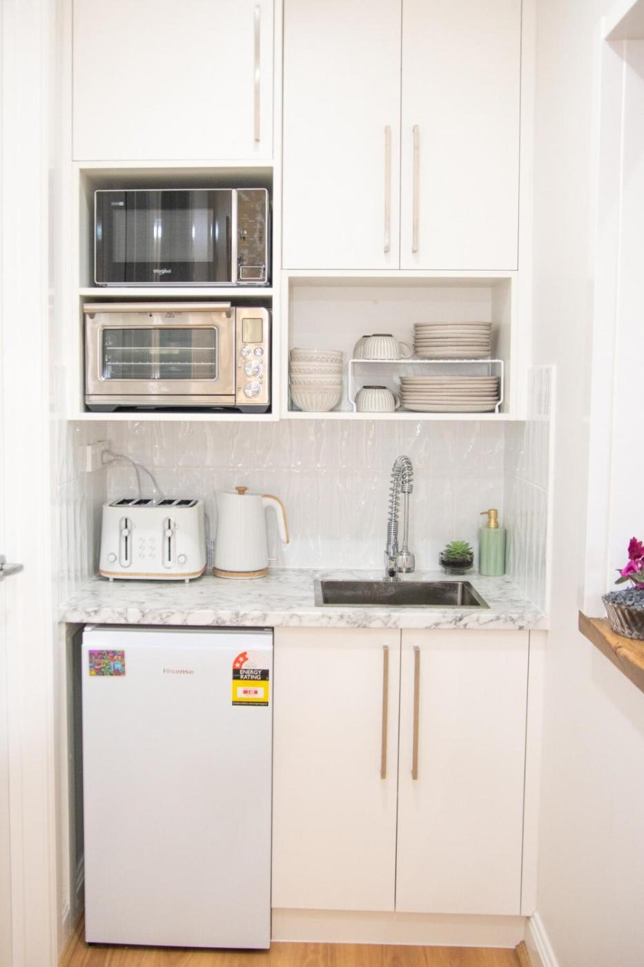 Two-Bedroom House. This holiday homes standout feature is the fireplace. Featuring a private entrance, this air-conditioned holiday home is comprised of 1 living room, 2 separate bedrooms and 1 bathroom with a bath and a shower. Guests will find a refrigerator, kitchenware, a microwave and a toaster in the well-equipped kitchenette. The holiday home also has a barbecue. This holiday home features a tea and coffee maker, flat-screen TV with streaming services, garden views, as well as winechampagne for guests. The unit offers 4 beds.