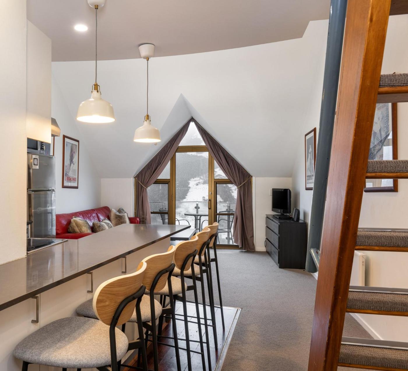 Lantern 32 Loft offers accommodation in Thredbo, 15 km from Ski Tube and 45 km from Lake Jindabyne. Free WiFi is available throughout the property and Thredbo Alpine Village is 800 metres away.