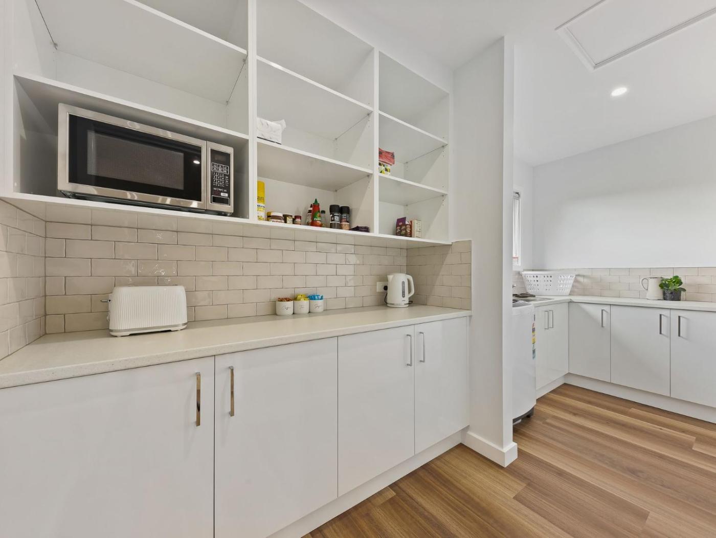 Three-Bedroom Townhouse. The air-conditioned holiday home has 3 bedrooms, 2 bathrooms with a shower and a kitchen. In the well-fitted kitchen, guests will find a refrigerator, an oven, a microwave and a toaster. This holiday home features a washing machine, an electric kettle, a TV and outdoor furniture. The unit has 5 beds.